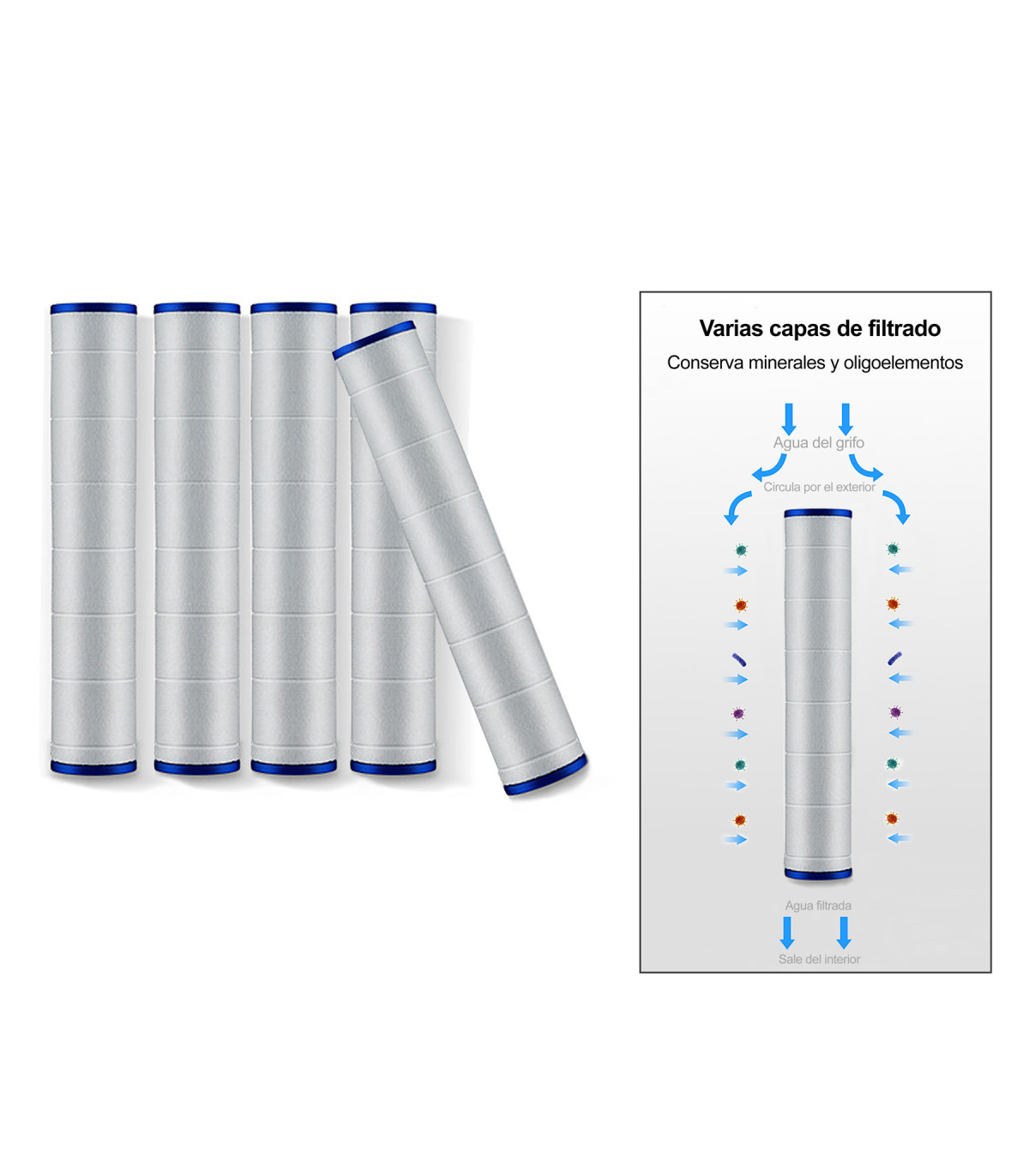 Der mikrometrische Filter kann Partikel wie Sand, Sedimente, Rost und andere Verunreinigungen im Wassernetz zurückhalten. Dank dieser Fähigkeit wird eine hohe hygienische Qualität erreicht, da er Protozoen und die meisten Bakterien abfangen kann.
