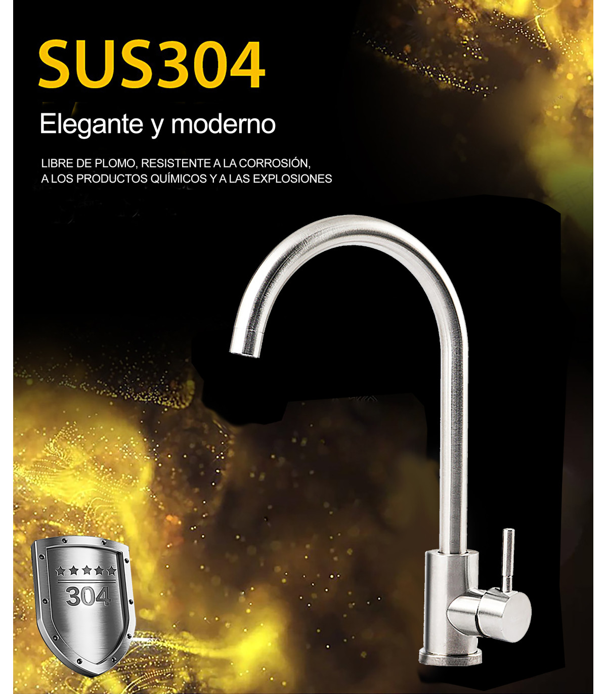 Die Küchen- und Waschtischarmatur Water No Limits LH-119 vereint Funktionalität, Hygiene und Langlebigkeit. Ihr drehbares Design 360º und die Herstellung aus Edelstahl 304 machen sie vielseitig für Küche und Waschtisch.