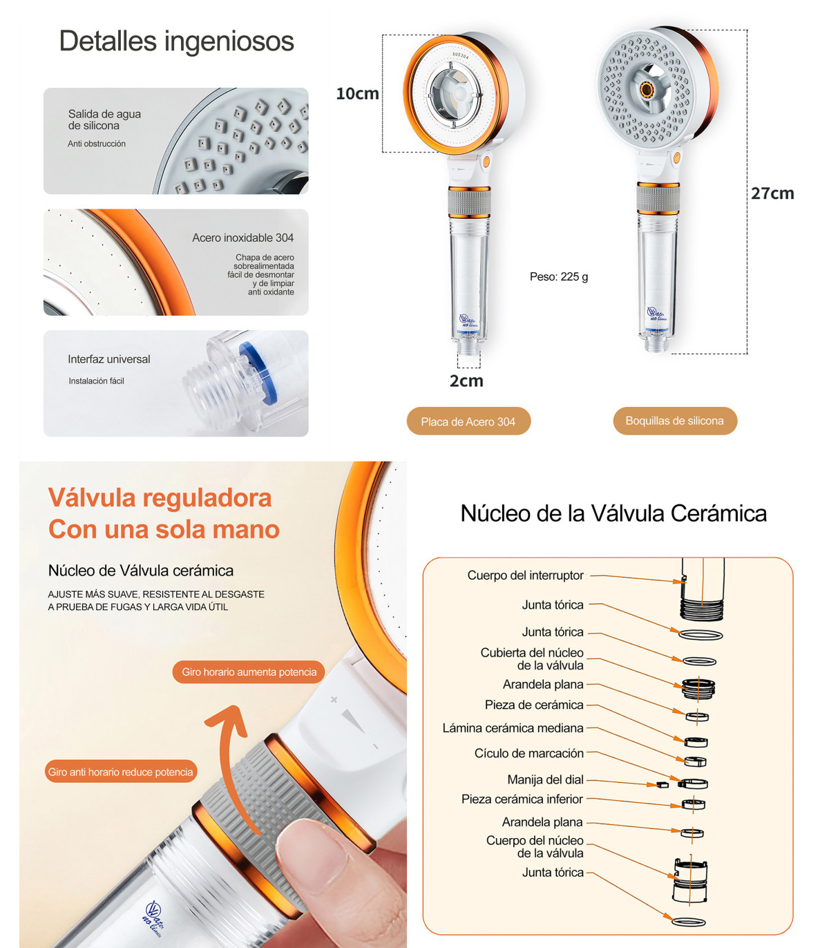- PRESIÓN NEBULIZADA: Agua uniforme sin salpicaduras, efecto masaje y ahorro de agua.