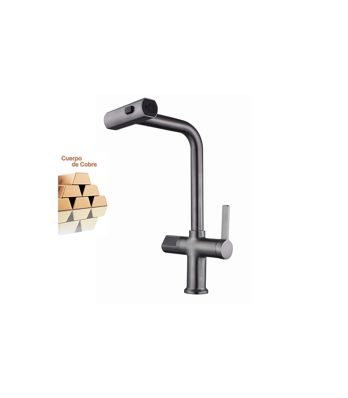 Grifo Cocina Display LH-567 | Cuerpo Cobre Macizo | Termómetro | Cabezal Extraíble | 3 modos de Agua