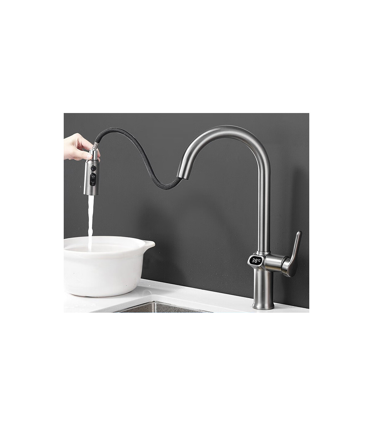 Grifo Cocina Display Temperatura LH-168 | Cuerpo Aleación Zinc | Cabezal Extraíble | Tres modos de Salida de Agua
