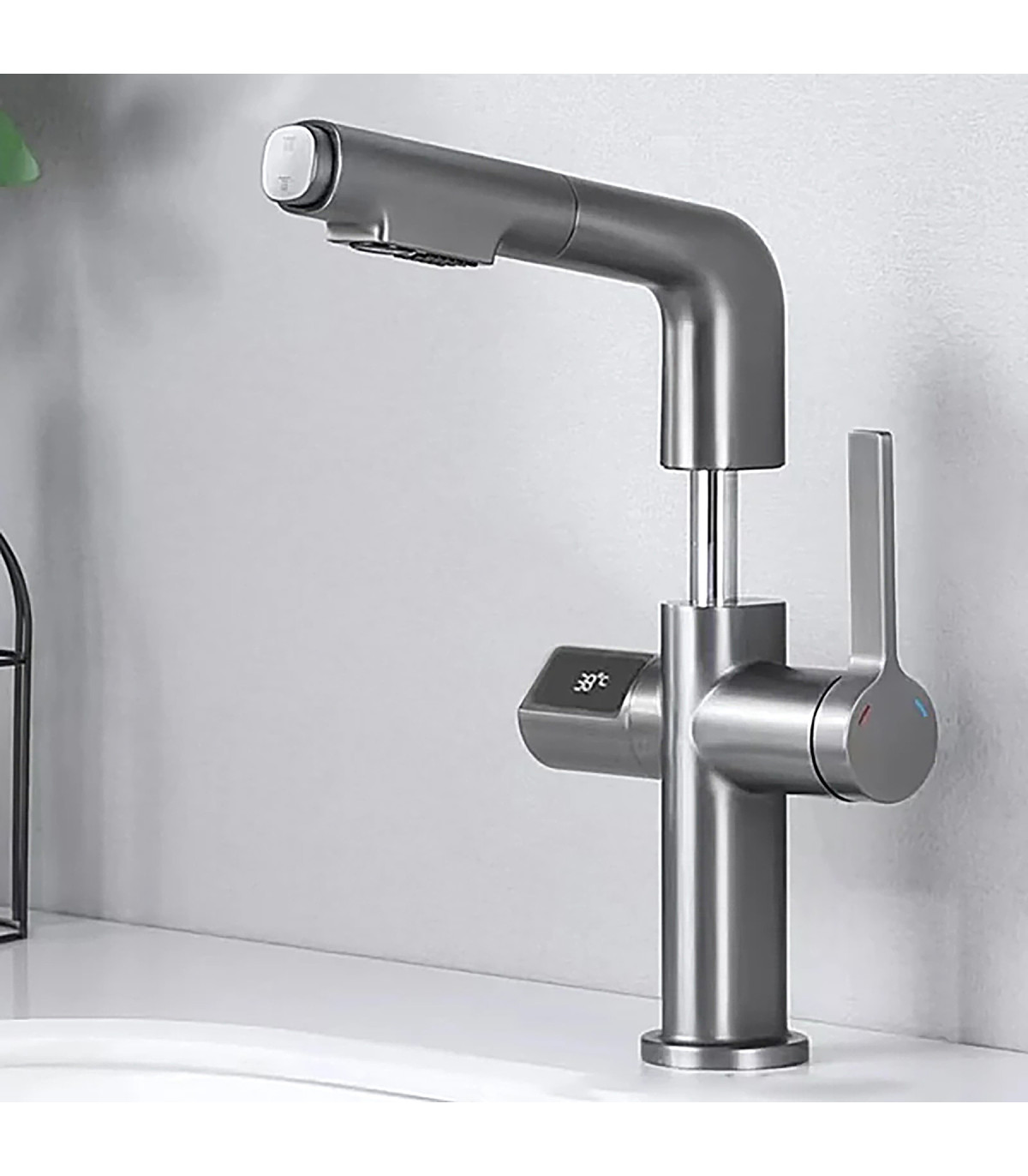 Grifo Lavabo Display Temperatura Dinamo SJ-231| Cuerpo Cobre | Cabezal Extraíble | Altura Ajustable para Lavar Cabezas
