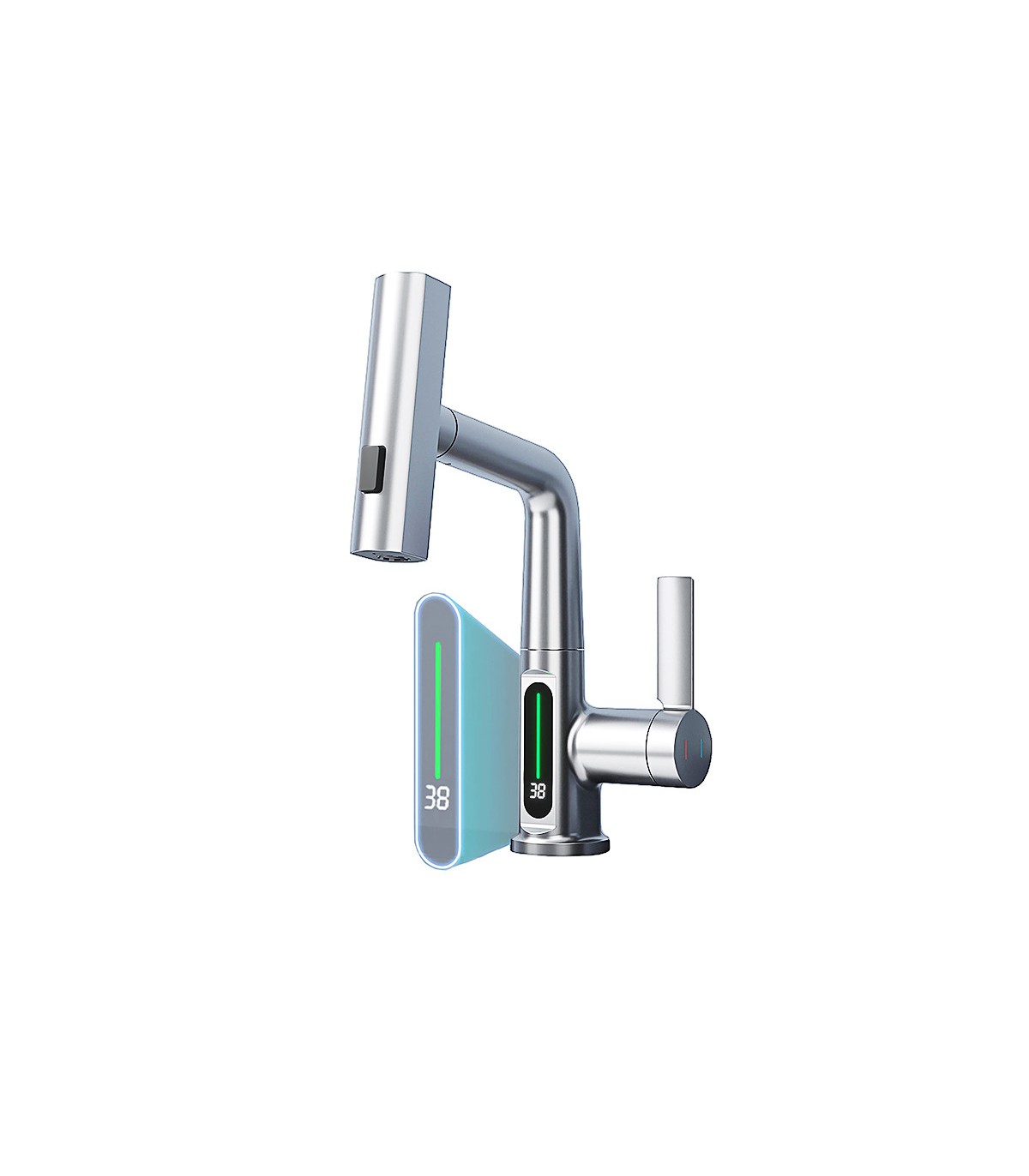 Grifo Lavabo Display LED Temperatura LH-189 | Cuerpo Aleación | Cabezal Extraíble 3 modos | Altura ajustable para Lavar Cabezas