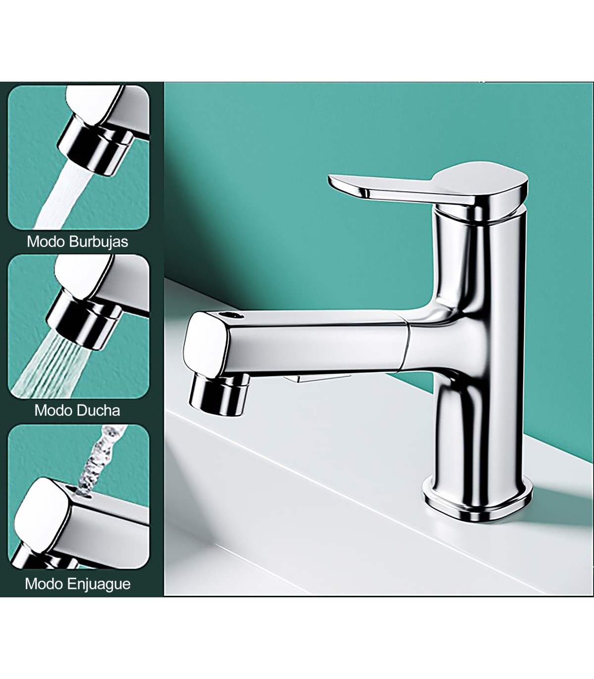 - GRIFO DE LAVABO MULTIFUNCIÓN: Diseño práctico para higiene diaria y cuidado bucal.
