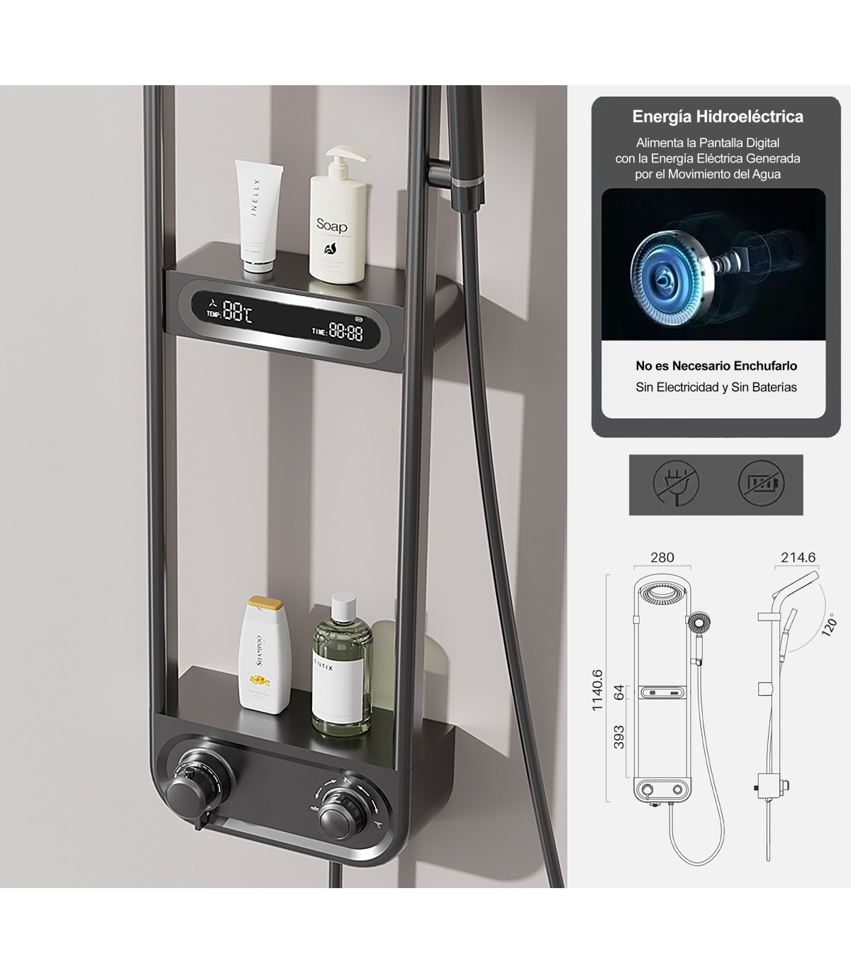 La Colonne Douche-Baignoire Water No Limits LH-198 est conçue pour offrir une expérience de douche avancée, combinant technologie thermostatique, matériaux de haute qualité et un design moderne axé sur le confort et la sécurité.