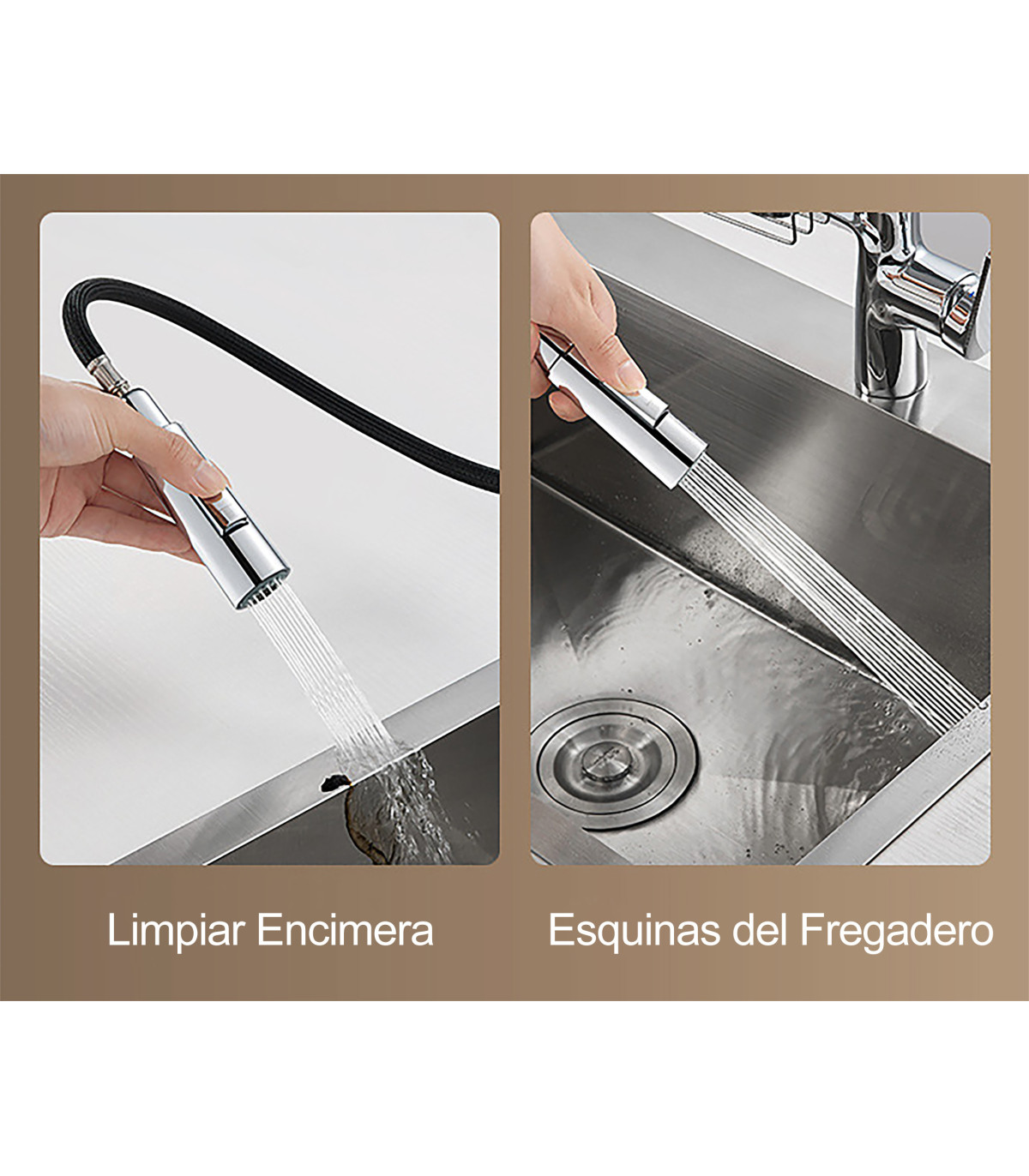 Il Rubinetto da Cucina Water No Limits LH-123 combina funzionalità, igiene e design moderno. Il suo sistema rotante a 360º e la bocca estraibile lo rendono ideale per qualsiasi cucina, mentre lo scaffale integrato aggiunge comfort e organizzazione.