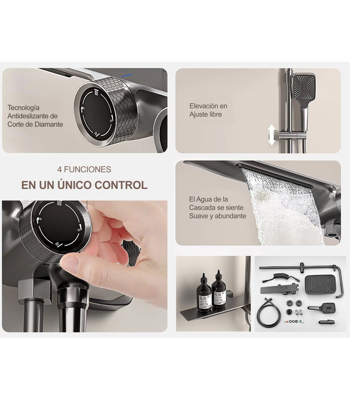 - VERSTELBARE HANDDOUCHE: Hoogteaanpassing en meerdere uitlaatmodi.