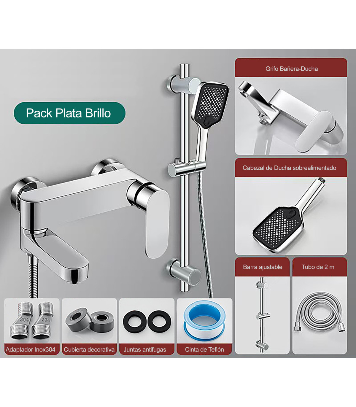 Het kit wordt aangevuld met een 2-meter doucheslang, afwerking, adapters, afdichtingen en teflonafdichting, voor een stevige, veilige en duurzame installatie.
