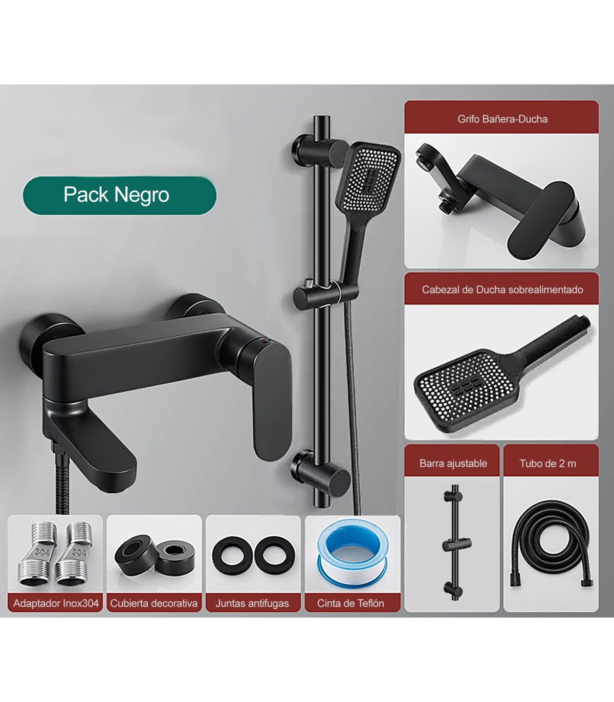 Kit uzupełnia wąż prysznicowy 2 metry, obramowania, adaptery, uszczelki i uszczelnienie teflonowe, zapewniające solidną, bezpieczną i trwałą instalację.