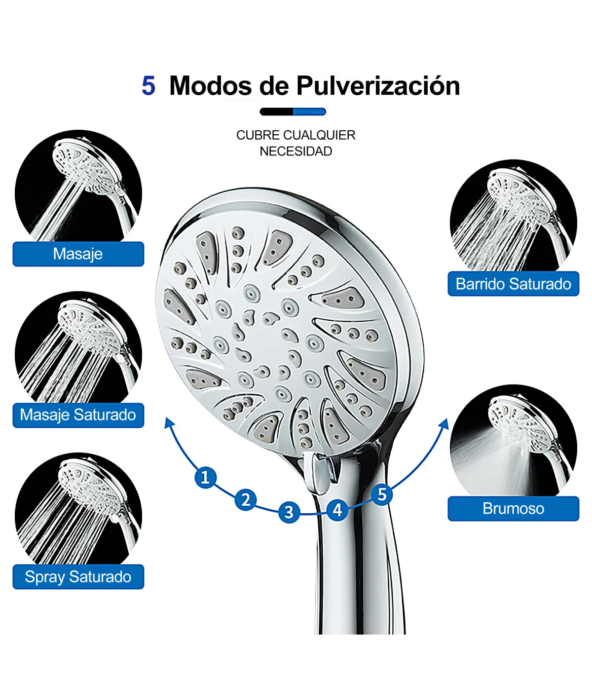 - CHUVEIRO COM 5 MODOS DE ÁGUA: Massagem, massagem saturada, spray saturado, varredura saturada e modo névoa, selector suave.