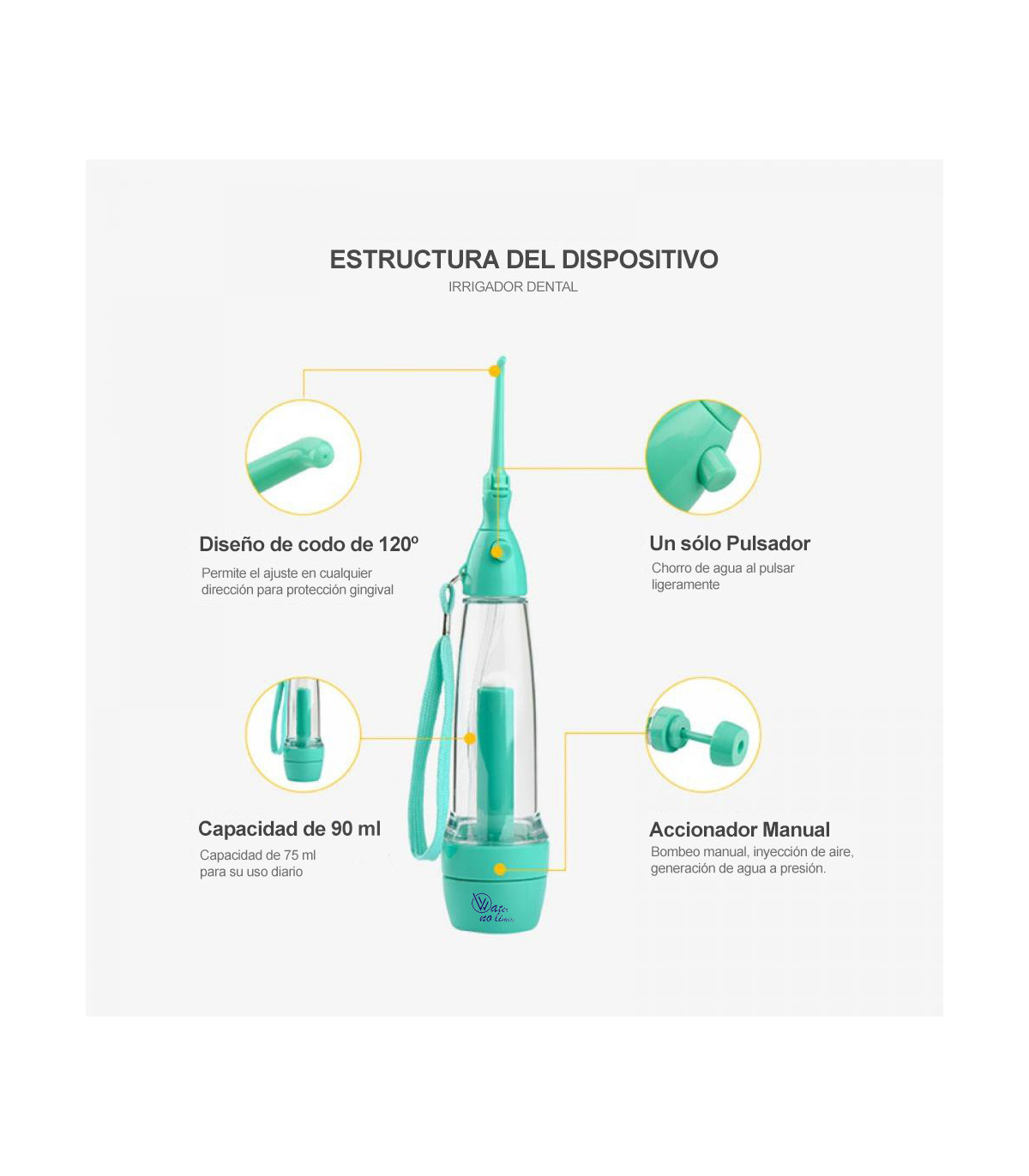 Irrigador Dental Portátil de Viagem LV190 | Sem pilhas nem eletricidade, leve e perfeito para ortodontia