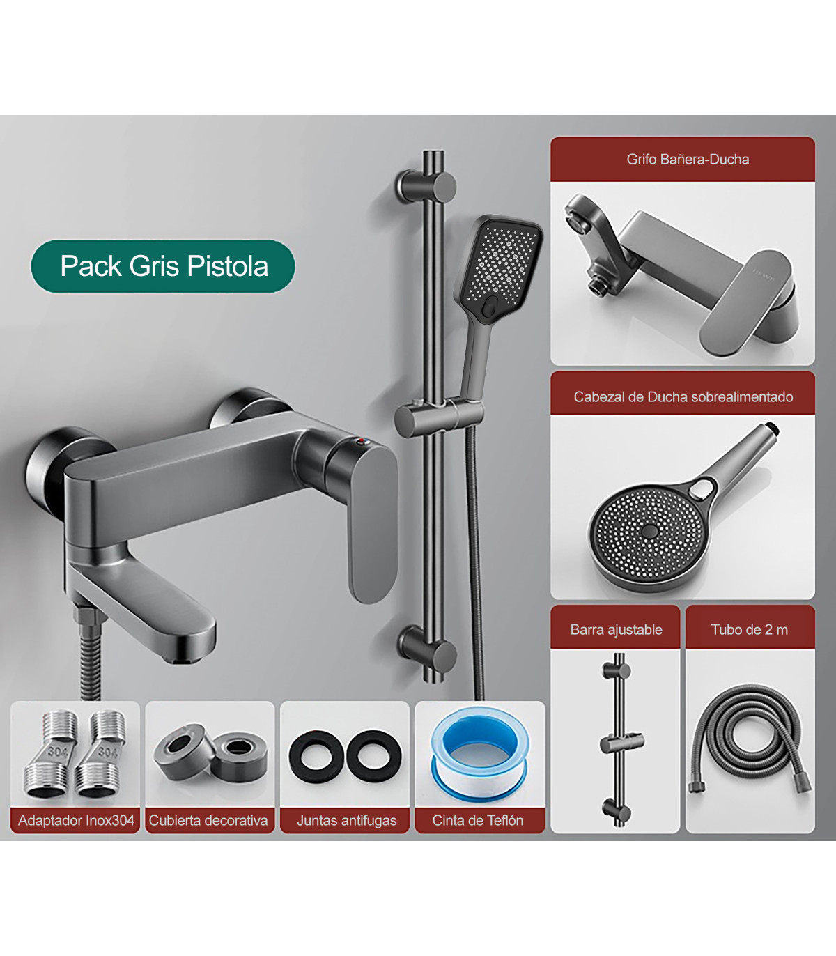 - KOMPLETT DUSCH-BADKOLONN: Inkluderar kran, duschhuvud, justerbar stång, slang, avslutningsdelar och tillbehör.