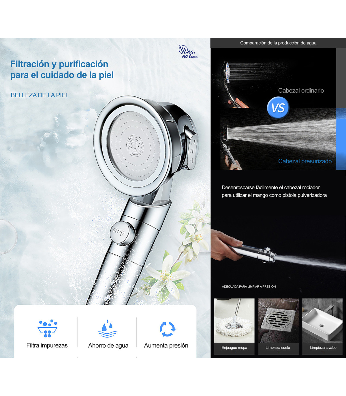 Nätperlator ger kraftfull men mjuk ström utan stänk, 4-lagers filtrering håller orenheter besparar vatten. Enkelspak styr kall/varm vatten keramisk kärna tålig höga temperaturer läckage, garanterar lång livslängd. Stor omkopplare underlättar bekväm exakt duschfunktionsval.