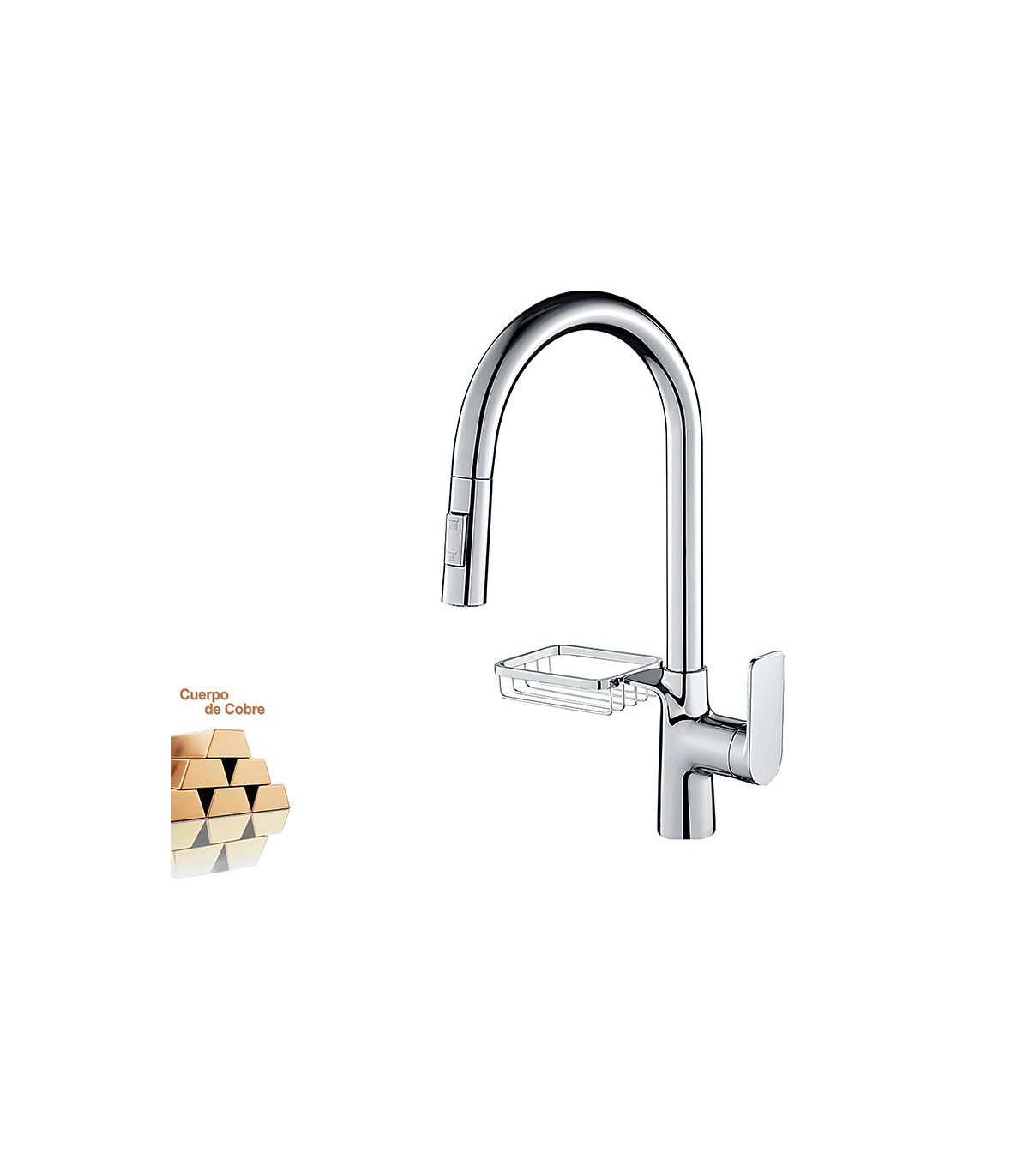 Köksblandare Water No Limits LH-123 kombinerar funktionalitet, hygien och modernt design. Dess 360º roterande system och utdragbara utlopp gör den ideal för alla kök, medan den integrerade hyllan ger komfort och organisation.